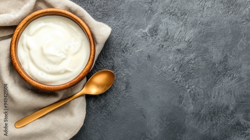 greek, yogurt, wooden, bowl, spoon, clothes, napkin, rustic, background, healthy, snack, dairy, creamy, texture, natural, light, flat, lay, cooking, breakfast, food, styling, homemade, nourishment, organic, simplicity, wholesome, fresh, elegance, culinary, delicious, idea, kitchen, meal, health, diet, lifestyle, overhead, shot, wide, angle, presentation