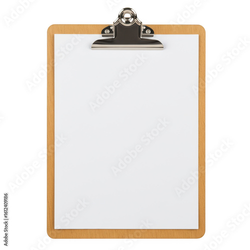 clipboard, wooden, wood, paper, sheet, blank, white, document, writing, note, list, task, checklist, organisation, planning, office, school, education, business, work, project, design, graphic, template, layout, copy, space, empty, surface, clip, metal, fastener, holder, stationery, supply, equipment, tool, aid, utility, simple, clean, minimalist, isolated, transparent, background