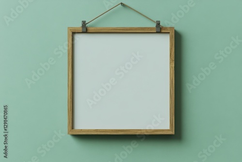 frame, wooden, blank, paper, wall, hanging, display, square, modern, minimal, clean, home, decoration, art, design, interior, empty, space, light, natural, texture, grain, surface, craft, material, simple, structure, style, view, front, copy, elegant, presentation, studio, product, detail, object, format, composition, template, gallery, background, perspective, angle, pale, green, neutral
