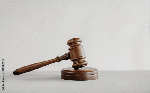 A wooden judges gavel resting on its sounding block, representing justice, law, court, and legal decisions