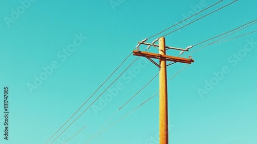 pole, power, line, sky, blue, utility, electricity, wood, infrastructure, transport, communication, rural, urban, landscape, nature, energy, cable, support, design, technology, connection, engineering, service, overhead, maintenance, safety, environment, horizon, minimalism, simplicity, daylight, weather, calmness, stability, structure, urbanisation, visual, scenery, aerial, perspective, contrast, clear, bright, modern, essential, resource, installation