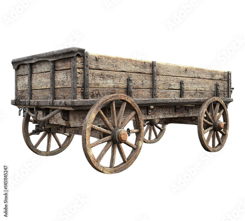 A wooden wagon with a wooden wheel