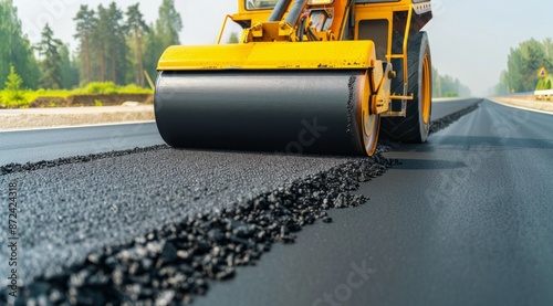 road, asphalt, street, construction, industrial, highway, work, pavement, equipment, pave, building, transportation, repair, tar, machinery, machine, vehicle, black, men at work, bitumen, heavy, city, site, roller, activity, compactor, hot, vibration, steam, job, urban, paver, renewal, truck, occupation, roadwork, gravel, fresh, pressure, concrete