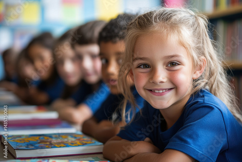 girl, smile, table, library, young, happy, sitting, reading, book, education, study, student, studying, learning, school, cognition, literature, academic, joyful, cheerful, content, page, story, imagination, intelligent, youngster, focused, fascinated, smart, bookshelf, peaceful, serene, tranquil, relaxing, silence, concentration