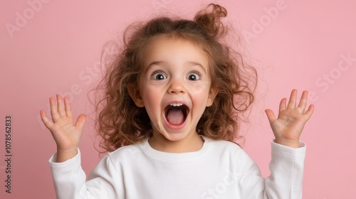 children, girl, curly, hair, excited, expression, pink, background, joy, surprise, happiness, emotion, innocence, delight, playful, cheerful, candid, portrait, vibrant, fun, youth, carefree, exuberant, childhood, bliss, energy, optimism, portraiture, contemporary, blackboard, joyful, spring, laughter, children, colours, expressive, personality