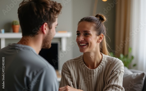 positive, man, family, cheerful, love, smiling, lifestyle, together, year, arrangement, stuff, 2, sitting, evening, happiness, woman, human relationships, house, indoor, celebrate, couple, room, new, home, payment, laptop, expression, girl, moving, happy, floor, lover, card, cosy, cardboard, housing, pair, flat, sofa, exchanging, apartment, place, box, excitement, emotion