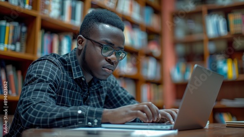 laptop, person, computer, student, studying, education, sitting, technology, young, man, adult, university, male, library, cyberspace, college, school, using, learning, working, desk, african, youth, academic, classroom, research, lifestyle, book, indoor, reading, black, looking, online, communication, network, connection, teenage, business, serious, typing, modern, wireless, notebook, homework, cognition, bookshelf, portrait, guy, campus