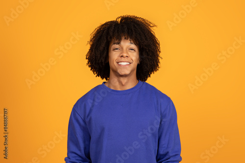 brazilian, african american, black, people, man, guy, isolated, curly hair, smiling, happy, young, yellow background, indoor, daytime, cheerful, vibrant, joyful, bright, standing, casual attire, relaxed, positive, playful, informal, modern, colourful, attitude, confidence, fashion, style, hair, teeth, expression, friendly, approachable, person, portrait, look, youthful, individual, appearance, background, lifestyle, attire, mood, facial expression