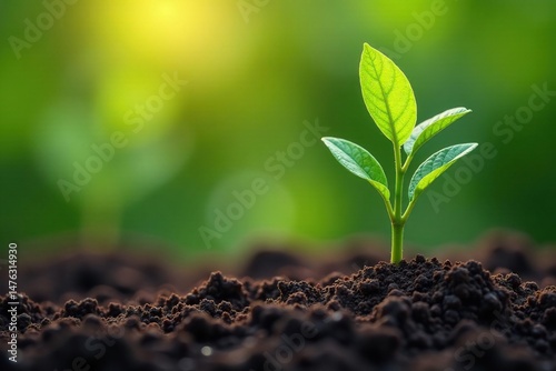 A young sapling is carefully planted in rich soil, ready to grow , landscaping, leaves, trunk