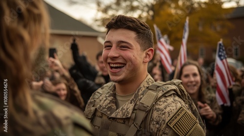 soldier, army, military, uniform, camouflage, flag, american, patriotic, celebration, reunion, homecoming, happy, smile, joy, crowd, people, greeting, welcome, family, friends, love, support, military service, veteran, service, duty, honour, courage, sacrifice, freedom, patriotism, nationalism, proud, hero, brave, strong, powerful, protection, defense, peace, security, country, nation, war, conflict