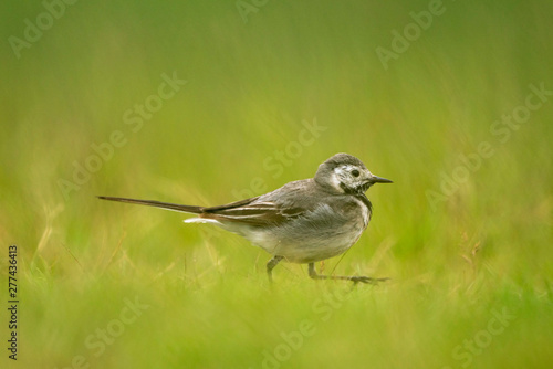 A young white wagtail jumping around
