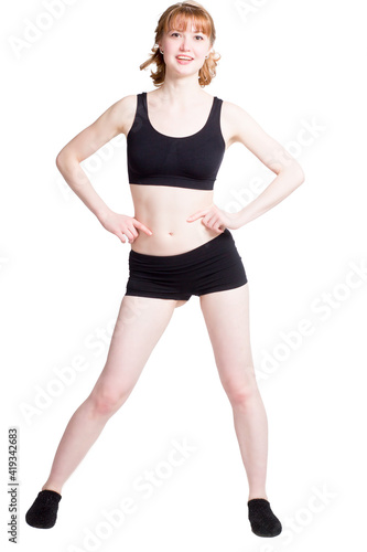 short, attractive, strength, beauty, sport, person, black, smile, strong, model, figure, pretty, health, slim, training, caucasian, fit, female, body, physical exercise, indoor, studio, portrait, exercise, gym, isolated, shape, white, woman, 1, athletic, active, young, adult, lifestyle, background, physical exercise, top