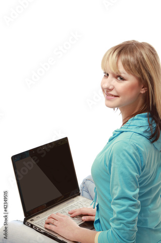 adult, attractive, background, beautiful, beauty, black, blond, business, commerce, computer, display, education, female, fresh, fun, girl, happy, home, cyberspace, job, lady, laptop, lifestyle, modern, natural, network, notebook, office, online, people, person, portrait, pretty, relax, search, smile, student, success, technology, web, white, wireless, woman, work, young, communication, typing, smiling, sideview