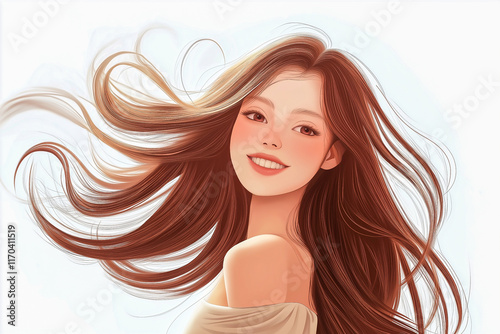 A young woman with beautiful flowing hair. An image for advertising hair care products