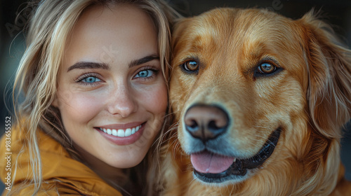 woman, blond, blonde hair, blue eye, smiling, golden retriever, dog, pet, animal, canino, cuddle, hug, closeup, portrait, happy, friendship, love, missy, female, caucasian, adult, 20s, 30s