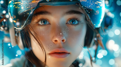 human, face, portrait, wearing, girl, eye, bicycle, helmet, blue, electronic, eye, goggles, motorcycle, stare, wear, woman, young