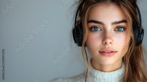 woman, earphones, portrait, beauty, eye, hair, style, fashion, expression, calm, listening, music, natural, freckle, cosy, sweater, youth, emotion, lifestyle, closeup, indoor, modern, relaxation, serenity, enjoyment, sound, technology, audio, connection, personality, mood, gaze, skin, warmth, comfort, chic, trendy, appearance, aesthetic, youthfulness, attraction, simplicity, elegance, vibe, charme, inspiration, creativity, sharpened, individuality