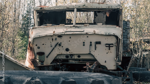 radiation, iron, no people, damaged, nature, ecology, threat, plant, pollution, ukraine, car, trip, broken, metal, wood, infection, danger, accident, season, industrial, zone, travel, transport, day, scrap metal, disaster, auto, abandoned, excursion, autumn, machinery, forest, dump, tour, rust, nobody, tour tourism, technical, chernobyl