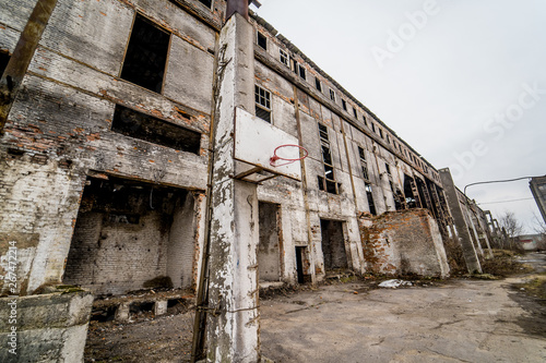 Abandoned factory interior. Old industrial building for demolition