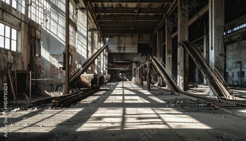 Abandoned Industrial Warehouse with Shadows and Natural Light