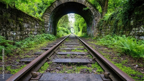 abandoned, railway, track, tunnel, stone, lush, forest, greenery, nature, overgrown, tree, foliage, wilderness, serene, moss, peaceful, pathway, disused, arch, rural, scenic, landscape, vegetation, rail, countryside, travel, old, forgotten, outdoors, infrastructure, adventure, green, tranquil, historic, rustic, secluded, journey, environment, transportation, structure, ancient, background, copy space