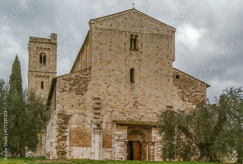 italy, abbey, church, tuscany, mediaeval, romanesque, old, europa, monastery, ancient, religion, sant, chapels, grass, building, architecture, history, pilgrimage, travel, green, tree, culture, famous, historic, religious, historical, saint, spring, facades, portal, day, cloud