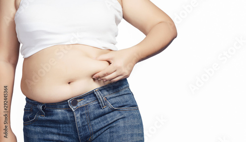 abdominal surface of fat woman on white background