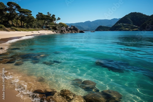 ABEL TASMAN coastal golden beaches and lush native forest., generative IA