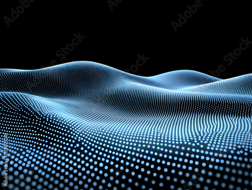 abstract, background, three-dimensional, blue, dot, wave, texture, pattern, design, digital, art, graphic, illustration, technology, futuristic, modern, elegant, smooth, flowing, dynamic, energy, light, dark, space, cosmic, network, connection, particle, point, line, curve, geometry, surface, landscape, visual, vibrant, glowing, illuminated, subtile, gradient, style, aesthetic, wallpaper, screen