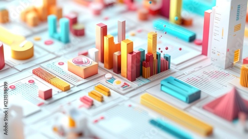 Abstract 3D Colorful Data Visualization: A vibrant and dynamic representation of data using colorful geometric shapes and charts.