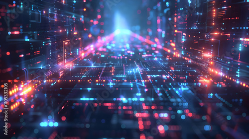 three-dimensional, abstract, digital, network, circuitry, line, node, glowing, futuristic, technology, background, illustration, datum, connection, communication, information, digital artwork, cyber, electric, neon, light, energy, vibrant, colourful, pattern, texture, design, graphic, visual, abstract background, digital background, neon light, circuit board, high technology, artificial intelligence, computer-generated, science fiction, innovation