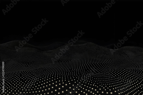 abstract, three-dimensional, dotted, landscape, wavy, pattern, dark background, digital artwork, design, dot, line, grid, mesh, topography, terrain, surface, futuristic, modern, minimal, simple, geometric, black, white, light, shadow, contrast, texture, form, shape, structure, element, composition, visual, graphic, illustration, render, computer graphic, artwork, creative, abstract background