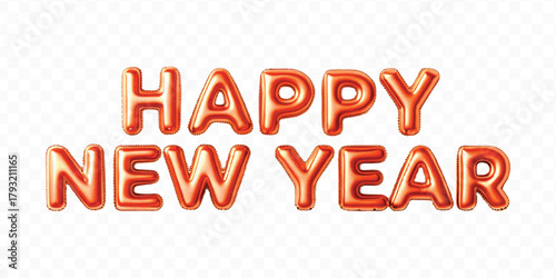 abstract 3d Happy New Year text effect made by different color foil balloons isolated on transparent background
