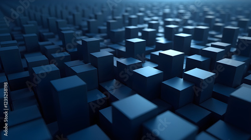 blue, cube, block, dark, depth, texture, pattern, geometry, abstract, three-dimensional, rendering, digital, metallic, shiny, shadow, light, perspective, space, array, grid, surface, design, modern, minimalist, cool, sleek, smooth, contrast, monotone, solid, volume, form, shape, structure, order, chaos, background, image, graphic, illustration, art, visual, aesthetic, mood, tone, style