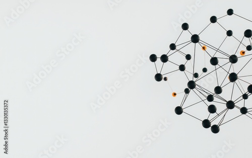 Abstract 3D Render of a Plexus Network with Black and Orange Nodes on a White Background