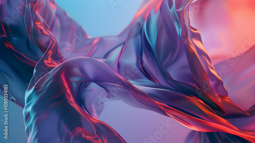 Abstract 3D Render of Flowing Fabric with Purple, Blue, and Red Colors