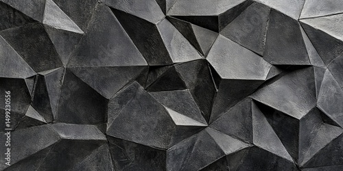 Abstract 3d texture, black concrete cement wall background, faceted texture, macro panorama, wide panoramic polygonal wallpaper