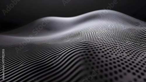 abstract, three-dimensional, background, wave, texture, pattern, design, graphic, illustration, art, monochrome, dark, grey, black, white, line, dot, curve, digital, render, modern, elegant, style, futuristic, technology, surface, ripple, flow, motion, dynamic, seamless, geometric, wallpaper, image, visual, creative, aesthetic, contemporary, minimal, simple, sophisticated, smooth, organic, undulating, greyscale, abstract background