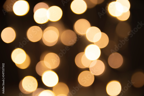 Abstract and blur for texture and background. Golden circle bokeh on black background.