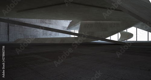 Abstract architectural brown and beige concrete interior of a minimalist house. 3D illustration and rendering