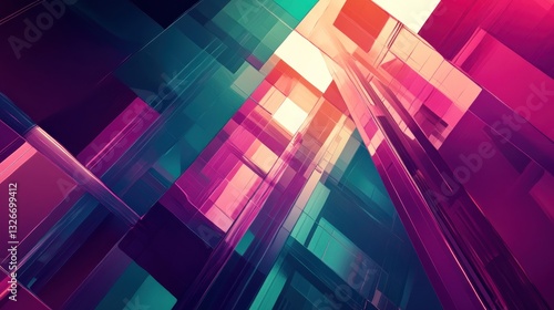 abstract, architecture, perspective, geometric, modern, design, futuristic, urban, city, building, glasses, line, colours, vibrant, colourful, shape, square, rectangle, light, shadow, interior, exterior, structure, technology, innovation, creativity, future, skyscraper, illustration, digital, rendering, composition, art, graphic, pattern, colours, pink, purple, teal, orange, lighting, modernism, contemporary, image, texture, visual