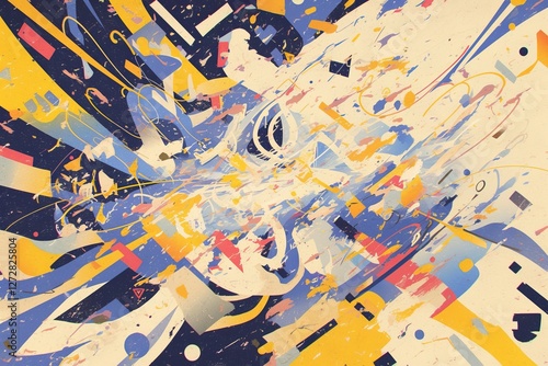 Abstract art explosion, dynamic colors, vibrant shapes, background. Possible use Digital art, graphic design, poster