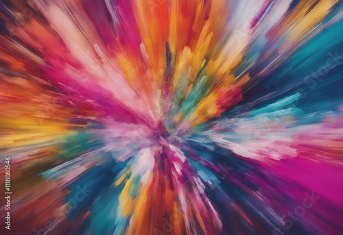 Abstract artwork featuring a vibrant explosion of colors radiating from a central point.