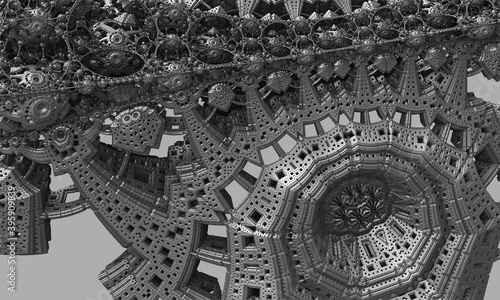 Abstract background, fantastic 3D grey metal structures, ancient civilization fictional background.