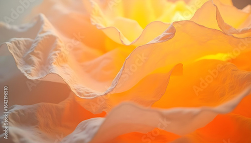 Abstract background in soft, warm color palette of oranges, yellows, and creams, the petals are layered and folded, creating a sense of depth and texture, the lighting is soft and diffused.