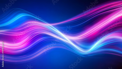 Abstract background of modern tech gradient waves in blue and pink hues, technology, modern, abstract, background, waves. Dynamic abstract light trails in neon pink and blue hues.