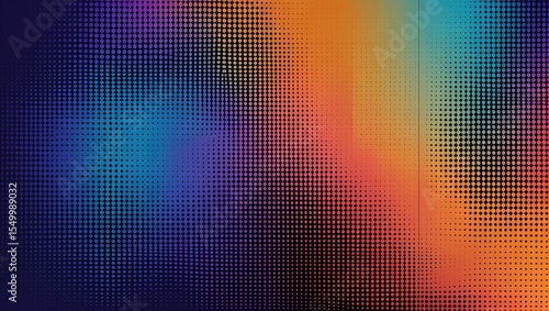 Abstract background with a vibrant gradient of purple blue orange and teal colors in a dotted pattern