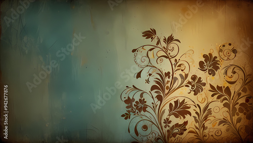 abstract background with a vintage theme, incorporating swirling patterns and faded floral motifs