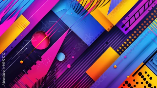 Abstract background with bold colors and geometric patterns.