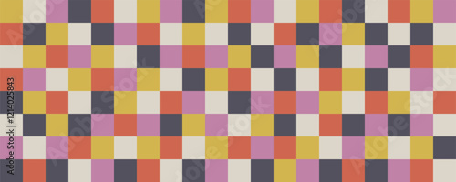 abstract, pattern, design, trendy, flat, cover, poster, print, web, banner, template, horizontal, graphic, geometric, presentation, booklet, cube, texture, fashion, concept, purple, beige, yellow, red, colourful, background, fabric, square, chequered, wallpaper, textile, vector, mosaic, illustration, tablecloth, decoration